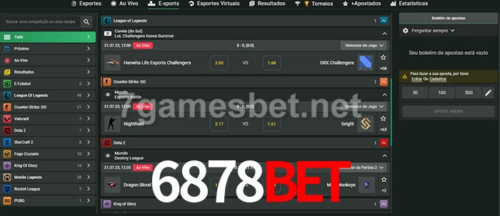 O 6878bet oferece uma grande seleção de opções de apostas em e-sports com probabilidades competitivas